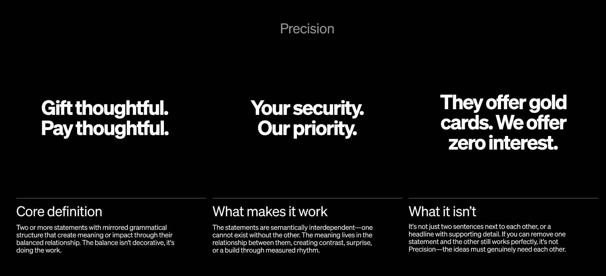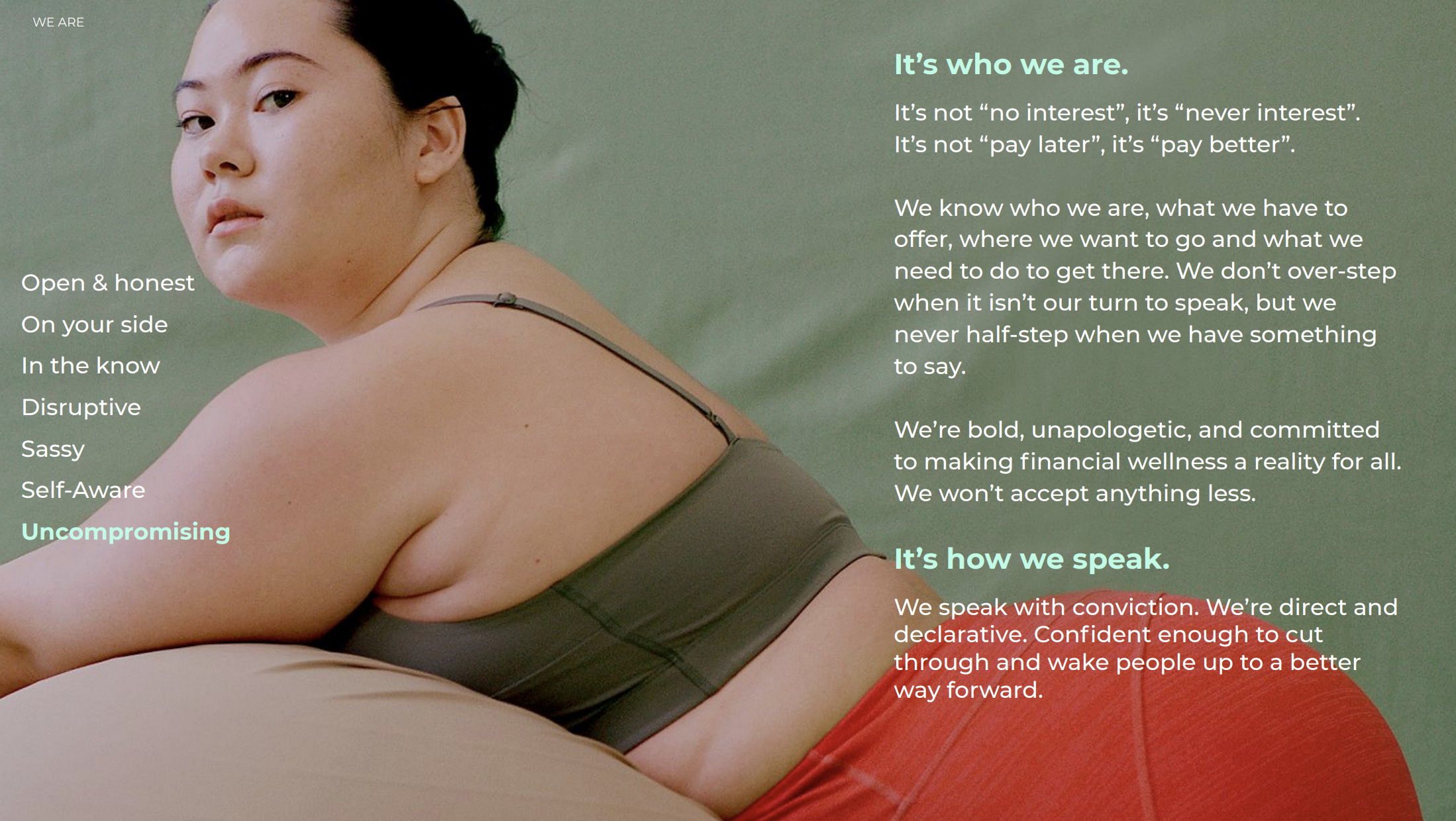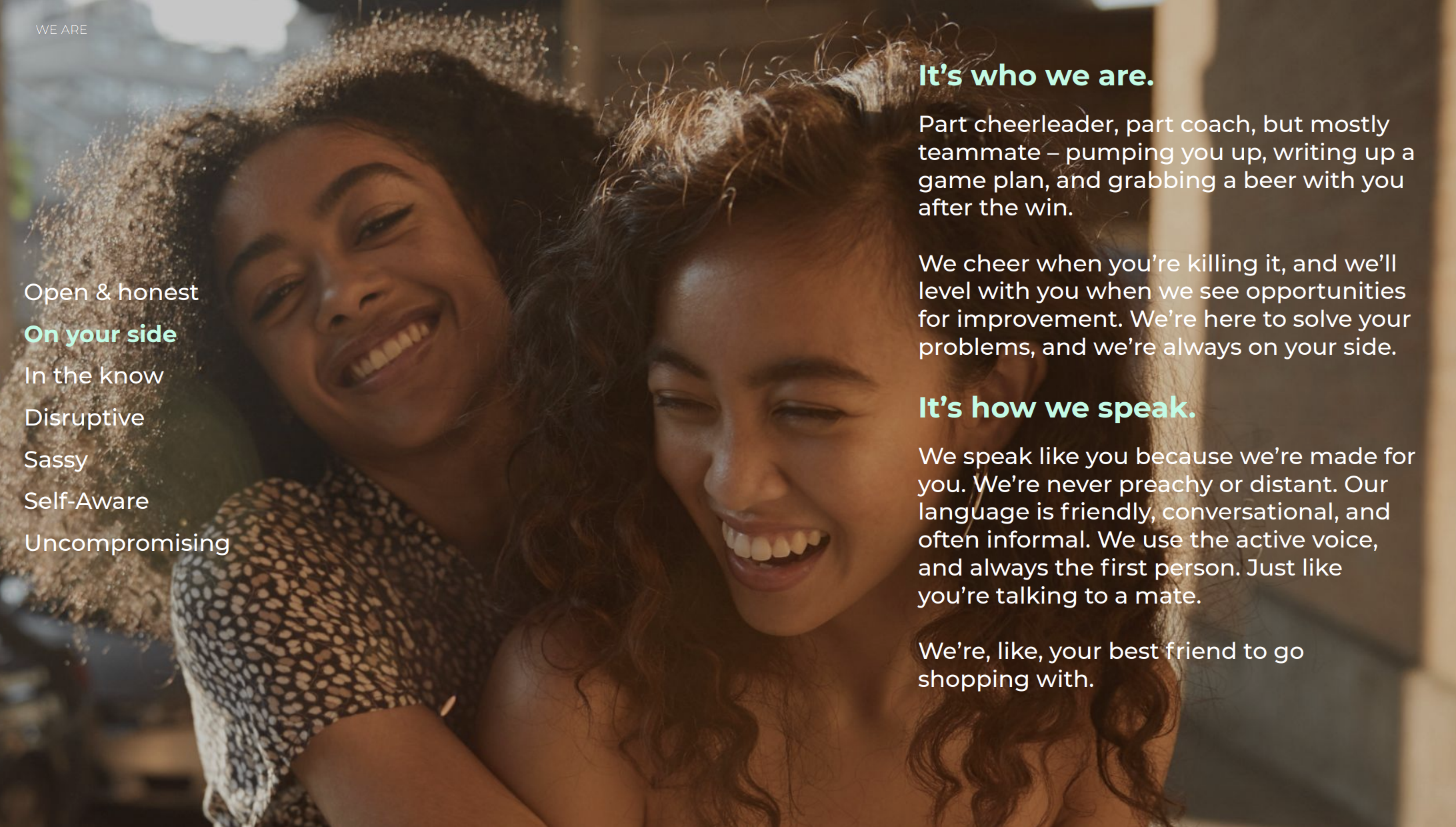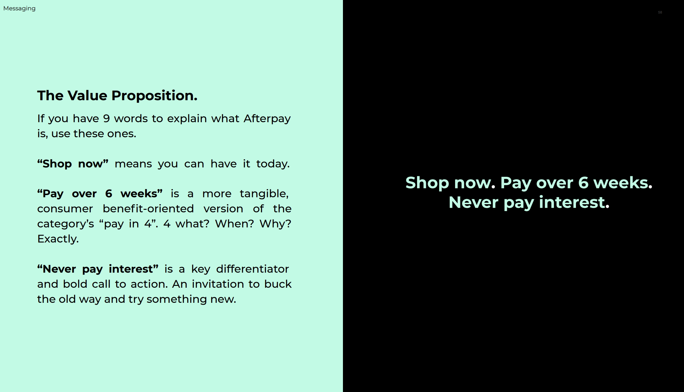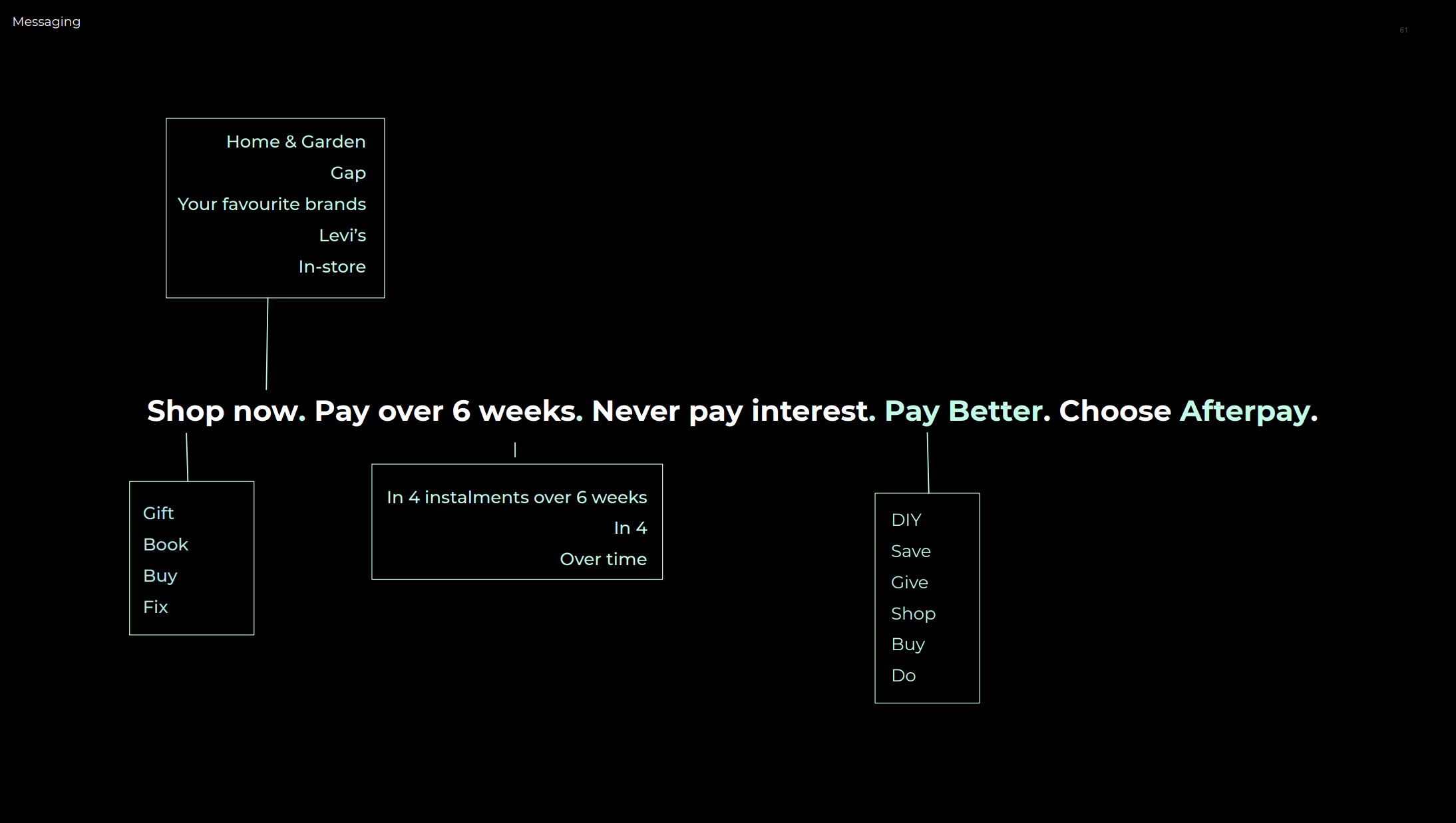 I built Afterpay’s first ever comprehensive tone bible from the ground up. And developed and defined every iteration following. What exists now is distictly Afterpay, policed to the comma, and lived and breathed by every creative working for the brand.